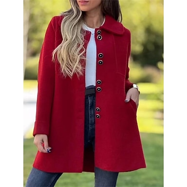 Damen Mantel Bequem Atmungsaktiv Tasche Mode Täglich Einfach Outdoor Lässig Täglich Einreihig Regulär Revers Normale Passform Langarm Oberbekleidung Schwarz Rote Aprikose Frühling Herbst