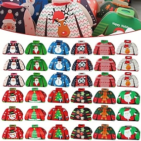48 Stück Weihnachts-Leckerli-Boxen in Form eines hässlichen Pullovers mit Griff, Weihnachtsbaum, Weihnachtsmann, Schneemann, Lebkuchen, Leckereien, Süßigkeiten, Geschenkpapierboxen für