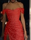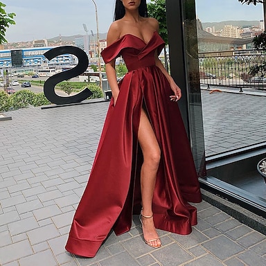 Meerjungfrauenschnitt Bodenlange Schleppe Abiballkleider Abendkleid Ballkleid Festliche Kleidung Glanz & Glamour Kurzarm Schulterfrei Hochzeitsgast Abschlussball Herbsthochzeitsempfang Satin