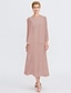 Strandhochzeit 3-teiliges Kleid für die Mutter der Braut Hochzeitsgast Party Glanz Glitzer Rundhalsausschnitt Knöchellang Chiffon Spitze 3/4-lange Ärmel mit Pailletten einfarbig