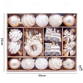 44-teiliges Set Weihnachtskugeln zum Aufhängen, galvanisierte Kunststoffkugeln, bemalt, Weihnachtsdekoration, Party-Dekor, Geschenkbox
