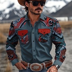 Herren Blumen Grafikdrucke Blätter Hemd Westernhemd Langarm Hemd Umlegekragen Outdoor Straße Schwarz Rote Marineblau Druck Button-Down Bekleidung Mode Streetwear Designer Westernstil