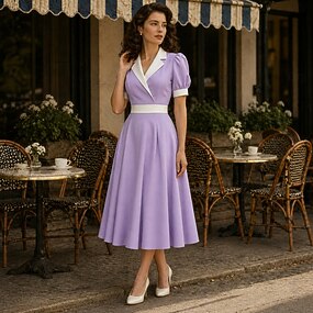 Vintage 1950er Retro Vintage Midlänge Knielang Kleid Kurze Ärmel Einfarbig Tailliert und ausgestellt Kostüm Damen Maskerade Lässig Party & Abend Erwachsene Kleid Frühling & Sommer