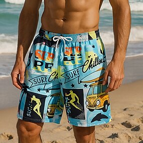Herren Shorts Strandshorts Kordelzug Grafik Buchstabe Abstrakt Schnelltrocknend Außenbereich Knielang Outdoor Urlaub Heim Urlaub Ethno-Stil Meerblau Weiß&Blau Dehnbar
