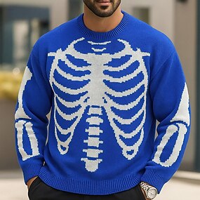 Halloween Herren Knochen Skelett Pullover Strickware Rundhalsausschnitt Lässig Urlaub Heim Straße 3D-Druck Stricken warm halten Langarm Frühling Herbst Winter Schwarz Blau