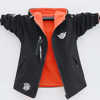 Kinder Jungen Kapuzenjacke Oberbekleidung Einfarbig Buchstabe Langarm Mantel Outdoor Baumwolle Cool Täglich Schwarz Blau Orange Herbst Winter 7-13 Jahre