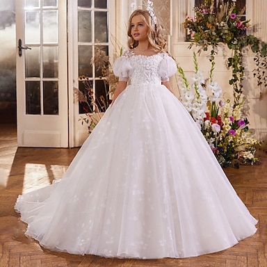Ballkleid knöchellang Blumenmädchenkleid Quinceanera Sofia Rapunzel Mädchen Süßes Abschlussballkleid Tüll mit Applikationen Mini-Braut Größe 3-16 Jahre