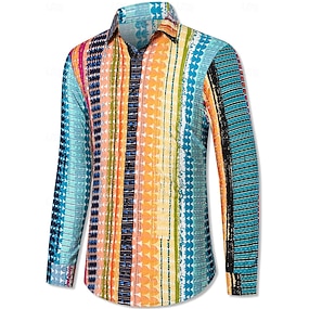 Retro Vintage 1970er Hemd Hippie Streifen Ethnisch Kostüm Herren Party Alltagskleidung Pride Parade Erwachsene Hemd