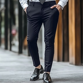 Herren Anzughosen Hose Hosen Freizeithose Knopf Tasche Falten Glatt Komfort Weich Knöchellänge Hochzeit Outdoor Täglich Elegant Modisch Schwarz Weiß Mikro-elastisch