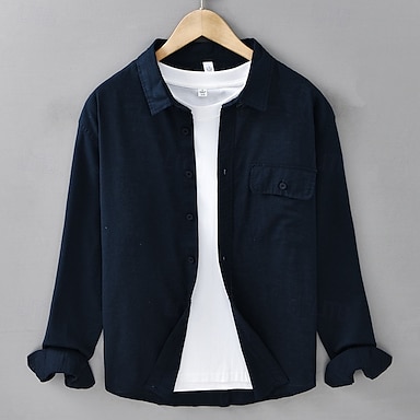 Herren Hemd Leinenhemd Freizeithemd Knopfhemd Baumwollhemd Einfach Urlaub Hawaiianisch Weiß Marineblau Blau Beige Langarm Revers Frühling Herbst Bekleidung Button-Down