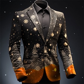 Weihnachten Herren Weihnachtsbaum Blazerjacke Mantel Bequem Atmungsaktiv Künstlerisch Lässig Party-Abendmode Täglich Festival 3D-Druck Knöpfe Herbst Winter Fallendes Revers Langarm Rote Blau Purpur