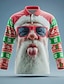 Weihnachten Herren Weihnachtsmann Polo Langarm Stehkragen Hässlich Alltagstauglich Urlaub Festival 3D-Druck Frühling Herbst Winter Weiß 1 Weiß 2 Weiß 3