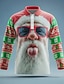 Weihnachten Herren Weihnachtsmann Polo Langarm Stehkragen Alltagstauglich Urlaub Festival Reißverschluss 3D-Druck Frühling Herbst Winter Weiß Grün Rote