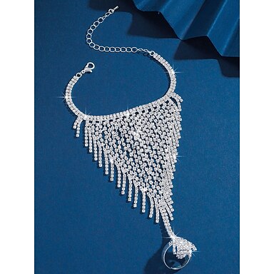 Funkelndes Kristallschmuckset für Damen – Statement-Halskette, Hängeohrringe &Armband-Ring-Kombination aus Kette und Hand, luxuriöse Strass-Accessoires für Abschlussbälle und Bälle