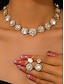 Schmuckset für Damen mit Perlen und Blumen – elegante Stoffrosenkette und passende Ohrringe für Silvesterpartys &besondere Feierlichkeiten
