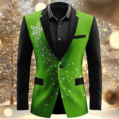 Weihnachts-Blazer für Herren mit Weihnachtsszenen-Print, Sternenmantel, Blazerjacke, atmungsaktiv, bequem, für Partys, Abende, Alltagskleidung, Knopfleiste, 3D-Print, mehrere Taschen, normale