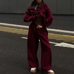 Damen Trainingsanzug Jogginghose Reißverschluss Kapuzensweatshirt Kordelzug Tasche Einfarbig Kombination Frühling Burgund Grün Fitnessstudio Training Laufen Hohe Taille Winddicht Leicht