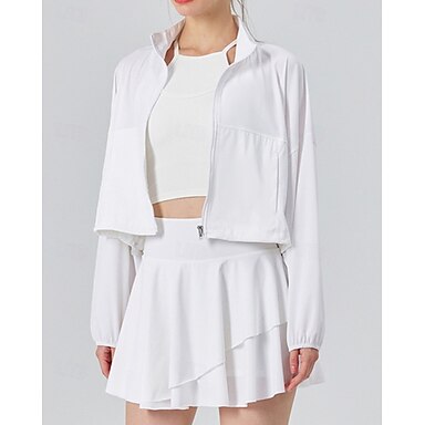 Damen Laufjacke Regenmantel Leicht Capri Langarm Oberteil Einfarbig UPF 50 Sonnenschutz Winddicht Schnelltrocknend Pilates Laufen Yoga Sportbekleidung Sportkleidung Schwarz Weiß Gelb