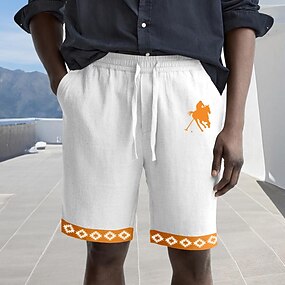 Herren Shorts Leinenshorts Sommershorts Strandshorts Kordelzug Elastischer Bund Druck Geometrisch Komfort Atmungsaktiv Knielang Outdoor Lässig Täglich Urlaub Hawaiianisch Weiß Grün Mikroelastisch