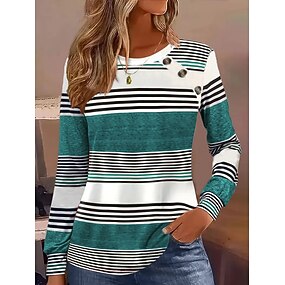 Damen Shirt Gestreift Stilvoll Casual Langarm Rundhals Reguläre Oberteile Täglicher Druck Rot Grün Grau Frühling Herbst Vorherherbst