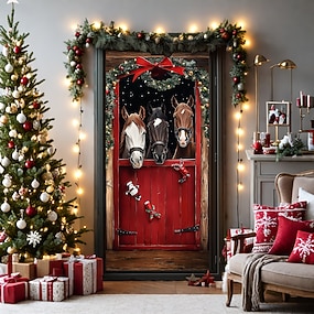 Weihnachts-Türdekorationen, Türabdeckungen, Pferde, Türteppich, Türvorhang, Dekoration, Hintergrund, Türbanner für die Haustür, Bauernhaus, Feiertagsparty, Dekorationszubehör für drinnen und draußen