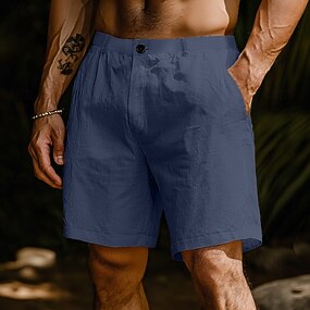Herren Shorts Leinenshorts Sommershorts Strandshorts Kordelzug Tasche Bein mit Reißverschluss Einfach Komfort Atmungsaktiv Kurz Lässig Täglich Ferien Mode Klassicher Stil Weiß Marineblau