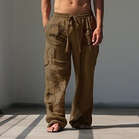 Herren Grafikdrucke Freizeithose Baggy-Hosen Mittlere Taille Ethno-Stil Lässig Kordelzug Elastischer Bund Fronttasche Frühling & Sommer Blau Schwarz Khaki