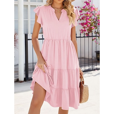 Damen Maxidress Baumwoll-Kleid Stilvoll Basic Brautkleider schlicht Urlaub Täglich Regular Fit Glatt Kurzarm V Ausschnitt Rosa Aprikose Sommer