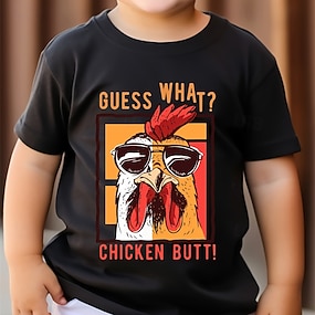 100% Baumwolle kinderkleidung Jungen Schwarz Tier Hahn T-Shirt Oberteile Rundhalsausschnitt Kurzarm Casual Freizeitskleidung Urlaub Modisch Sport Bedruckt Sommer