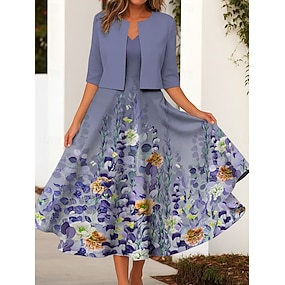Damen Zwei-Teiler Kleid Sets Midi Kleid mit Jacke Elegantes A-Linien Kleid Halbarm Casual Semi Formal Ombre Blumenmuster V-Ausschnitt Date Pink Blau Lila Regelmäßige Passform