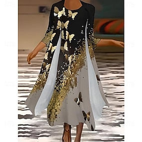 Damen Kleid-Set Sommerkleid Urlaub Lässig Ombre Blumen Druck Maxikleid Dreiviertelarm Rundhalsausschnitt Täglich Hochzeitsgast Schwarz Himmelblau Dunkelblau Sommer Frühling Normale Passform