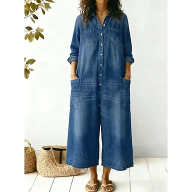 Damen Spielanzug Aktiv Langarm Weites Bein Täglich Urlaub Lässiger Schnitt Blau Schwarz Frühling