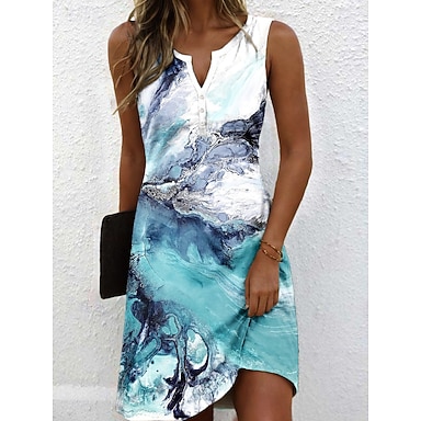 Damen Mini Kleid Lässiges Kleid Sommerkleid Urlaubskleid Lässiger Alltag Urlaub Reguläre Passform Grafisches Batikmuster Ärmellos V-Ausschnitt Aqua Blau Sommer Frühling