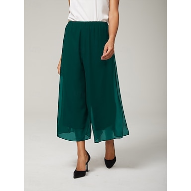 Damen Weite Hosenbeine Elegant Knöchellang Mittlere Taille Dehnbar Lässig Büro / Karriere Alltagskleidung Smaragdgrün Sommer Frühling Herbst