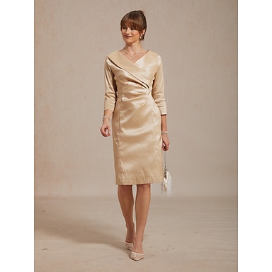 Damen Minikleid Etui-Kleid Wickelkleid Elegant Hochzeitsgast Cocktailparty Gerafft Normale Passform Einfarbig Dreiviertelarm V Ausschnitt Hemdkragen Champagner