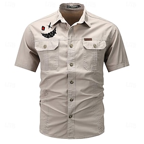Herren Stern Arbeitshemd Westernhemd Cargohemd Kurzarm Lässig Taktisch Sport & Outdoor Ausgehen Sommer Frühling Umlegekragen Druck Armeegrün Khaki Dunkelblau Beige