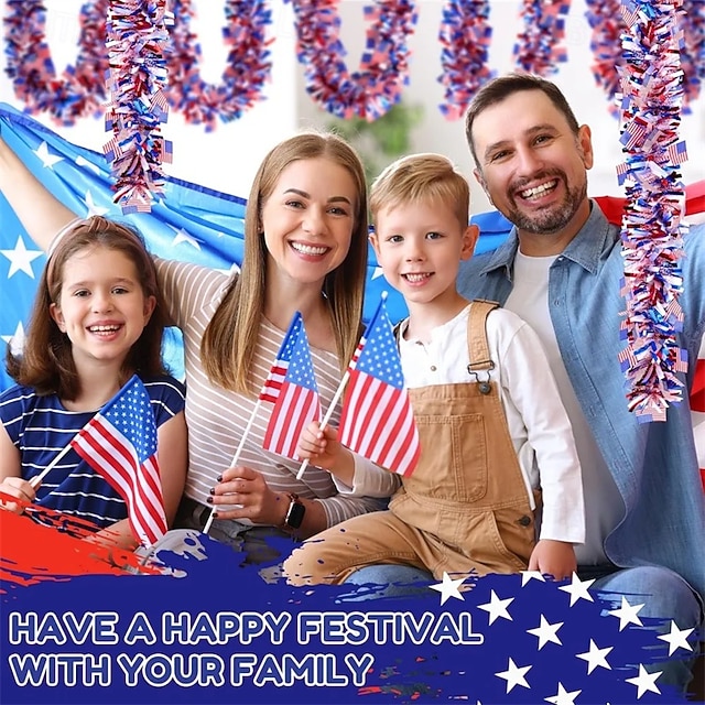 66 Fuß lange patriotische Lametta-Girlande mit amerikanischen Flaggen, dick &Flauschige, rot-weiß-blaue Metallic-Girlande für den 4. Juli, den Unabhängigkeitstag, Gedenktag, Dekorationen, 2026 - $42.99 –P8