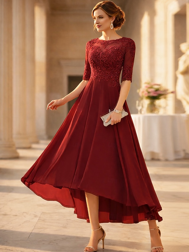 Anlass:Hochzeitsgast,Geburtstag,Hochzeitsfeier,Stil:Elegant,Umriss:A-Linie,Saum / Schleppe:Knöchellänge,Ausschnitt:Rundhalsausschnitt,Stoff:Spitze,Rücken Details:Reißverschluss,Ärmellänge:Halbarm,Verzierung:Einfarbig,Voll gefüttert:Ja,Kleiderarten:Cocktailkleid,Abendkleid,Kleid für Hochzeitsgäste,Partykleid,Geschlecht:Damen,