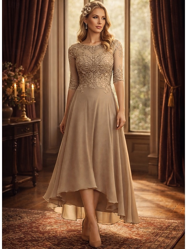 A-Linie Bodenlang Partykleid Cocktailkleid Kleid für Hochzeitsgäste Brautmutterkleid Halbarm Rundhalsausschnitt Elegant Formell Hochzeitsgast Formeller Abend Chiffon mit Einfarbig