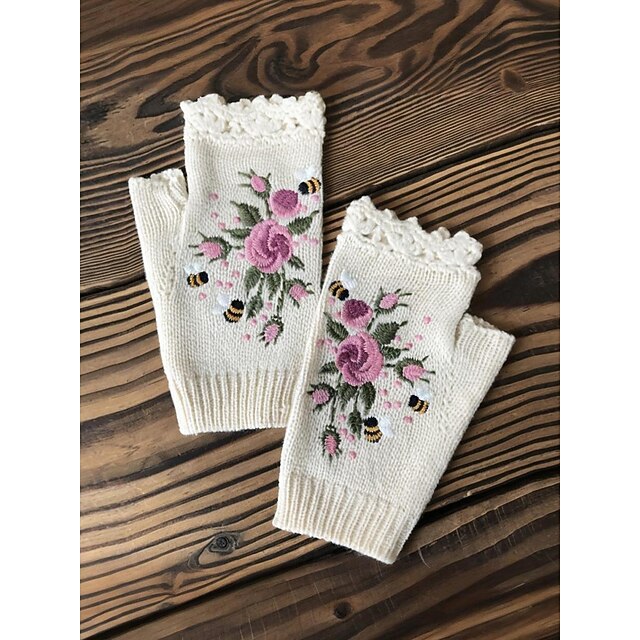 Weihnachtshandschuhe für Damen mit Stickerei – Blumenmuster mit Bienen, Material: Baumwollfaden, in mehreren Farben erhältlich, perfekt für die Winterferien und festliche Anlässe 2026 - $18.99 –P3