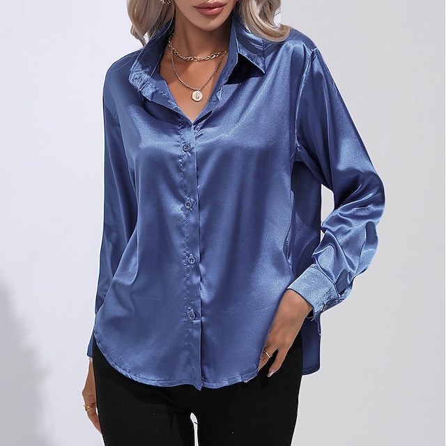 Oberteil Typ: Hemd, Bluse, Druckart: ohne Druck, Ausschnitt: Hemdkragen, Design: Knöpfe, Muster: Einfarbig, Passform: Normale Passform, Anlass: Täglich, Saison: Frühling, Herbst Winter, Elastizität: Mikroelastisch, Stil: Täglich, Neon & Leuchtend, Basic, Dicke: Standard, Geschlecht: Damen, Pflegetipps: Handwäsche, Maschinenwäsche, Stoff: Polyester,