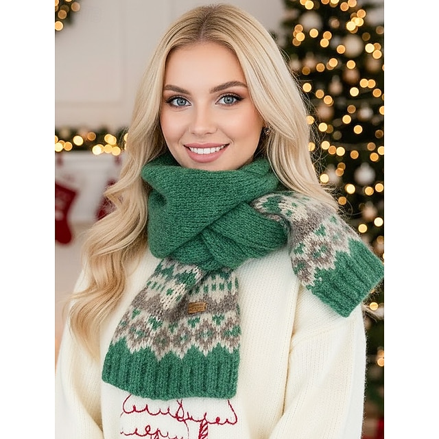Weihnachtsstrickschal für Damen – kuschelig, weich, Fair-Isle-Muster, verschiedene Farben, perfekt für die Feiertage und als Wintergeschenk 2026 - $18.99 –P5