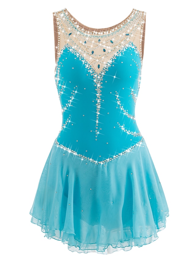 Eiskunstlaufkleid Damen Mädchen Eislaufen Kleider Yan-pink Ägäisblau Weiß Patchwork Gitter Spandex Praxis Wettbewerb Eiskunstlaufkleidung Handgemacht Mit Steinen verziert Strass Ärmellos Eislaufen