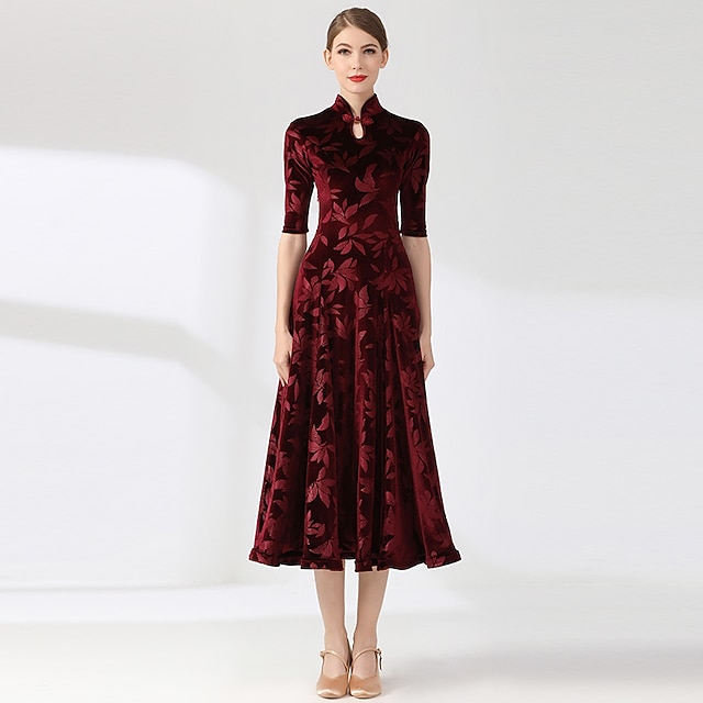Geschlecht: Damen, Stil: Künstlerisch / Retro, Anlass: Leistung, Training, Kategorie: Gesellschaftstanz, Stoff: Samt, Ärmellänge: Halbarm, Verzierung: Druck, Art der Gürtellinie: Hoch, Eingearbeitete Körbchen: Nein, Ausschnitt: Hoher Ausschnitt , Altersgruppe: Erwachsene, Im Paket: Kleid,
