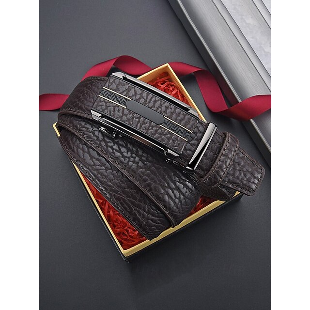 Eleganter Herren-Gürtel aus Kunstleder, Automatikschließe mit strukturierter Oberfläche, klassischer, formeller Stil, Farben Schwarz und Kaffeebraun, für Hochzeiten, Business-Kleidung und gehobene Freizeitkleidung 2026 - $12.99 –P7