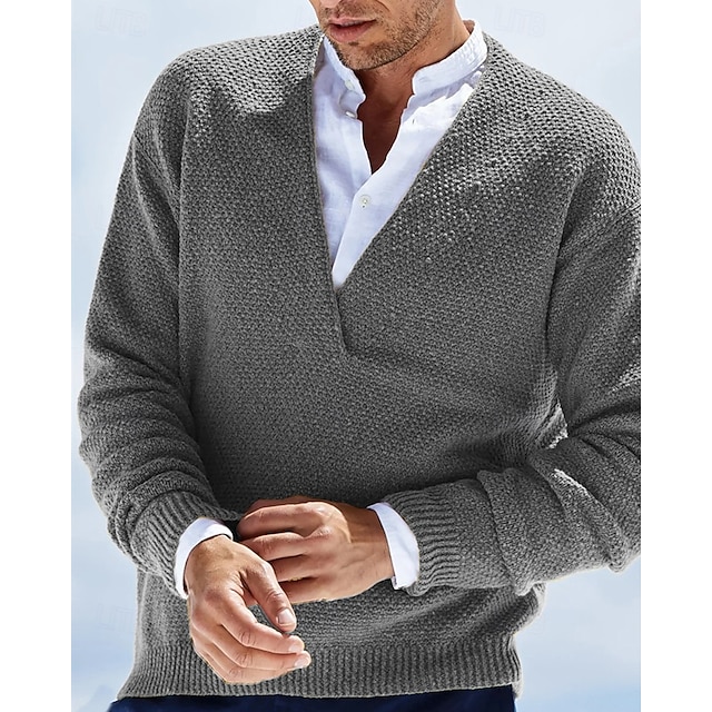 Herren Pullover Kleid Pullover Strickpullover Gerippt Stricken Standard Strick Glatt V Ausschnitt Modisch Basic Freizeitskleidung Verabredung Bekleidung Herbst Winter Karamell Schwarz S M L 2026 - $41.99 –P10