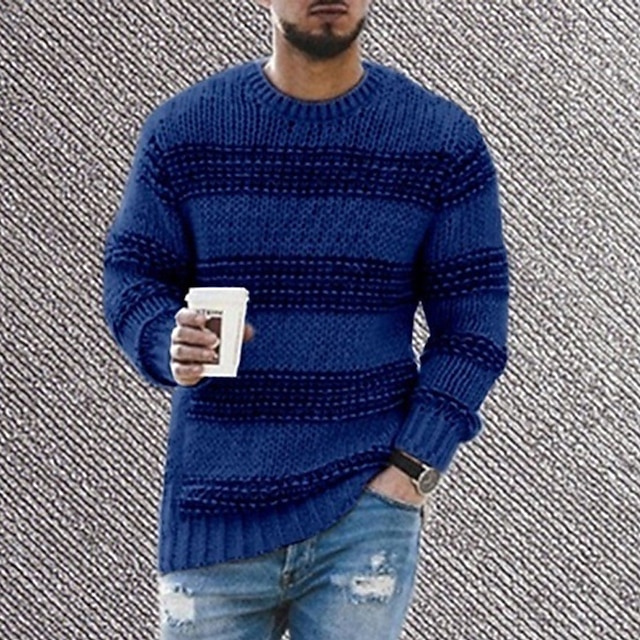 Herren Pullover Strickpullover Gerippt Gehäkelt Stricken Standard Strick Streifen Rundhalsausschnitt Modisch Basic Freizeitskleidung Verabredung Bekleidung Herbst Winter Schwarz Blau S M L 2026 - $42.99 –P4