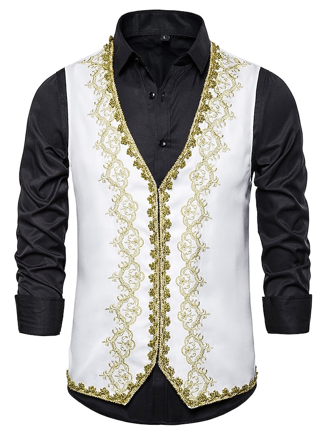 Herren Weste Weihnachten Hochzeitsfeier Neujahr Mittelalterliche Renaissance Sommer Frühling Vintage-Stil Stickerei Polyester Cosplay Farbblock V Ausschnitt Dünn Schwarz Weiß Rote Weste