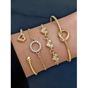 4-teiliges Armbandset aus einer Legierung im Boho-Stil für Damen, stapelbare Armreifen, perfekt für Strandurlaub, lässige Alltagskleidung und Sommeroutfits.