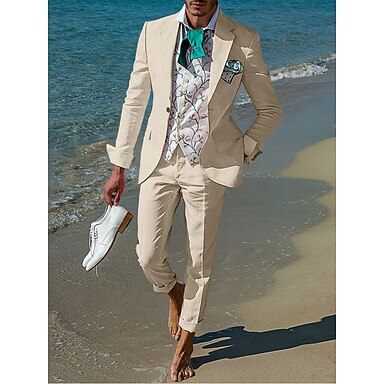Herren Strandhochzeit Leinenanzüge Weiß Beige Leicht Lässig Einfarbig Standard Passform 2-teilig Einreiher - 1 Knopf